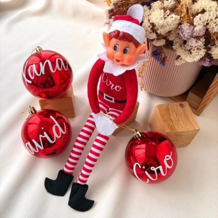 Una bola transparente llena de nubes de chuchería, lista para convertirse en un detalle especial y diferente. Puedes personalizarla con el nombre que elijas y combinarla con un lazo disponible en varios colores para adaptarla al estilo del árbol o a la esencia de cada hogar.